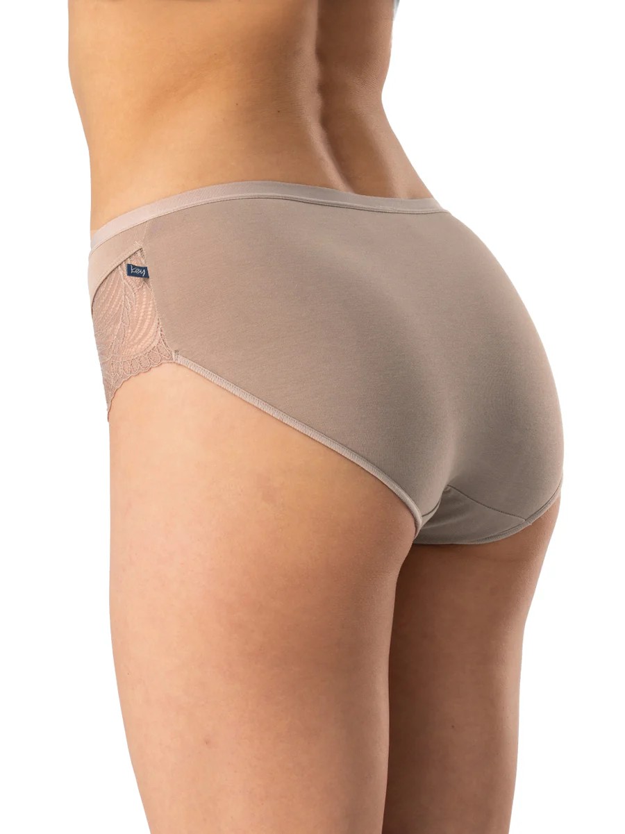 Жіночі трусики з високоякісної бавовни, плоский еластичний пояс. Закриті боки, передні штанини оброблені ажурним мереживом. Упаковано в коробку по дві штуки. Склад: 95% бавовна, 5% еластан.
