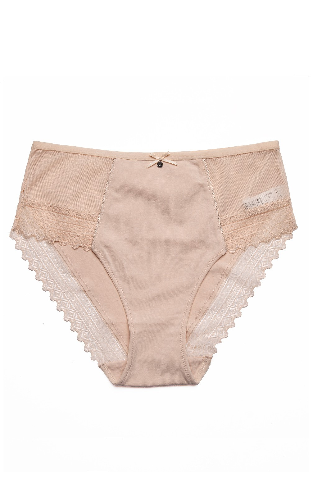 Жіночі труси, завищена лінія талії, приталені стегна, бавовна з малюнком і формою. З боків прозора сітка, ніжки оброблені ажурним мереживом. Склад: 95% бавовна, 5% еластан.