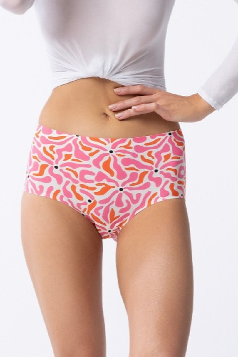 Lollipop Maxi Simple – це трусики з високою талією та ширшими, пишнішими боками. Вирізані лазером, прикрашені яскравим принтом, безшовні. Непомітні під облягаючим одягом. Упаковані в декоративну коробку. Ідеально підходять для подарунка. Склад: 89% поліамід, 10% еластан, 1% бавовна.