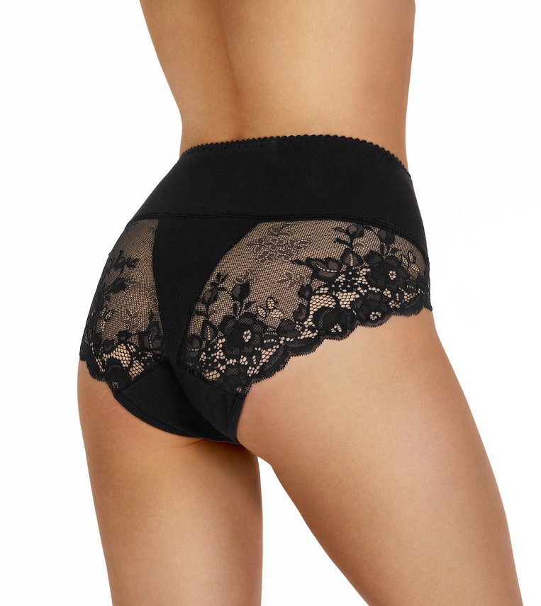 Жіночі трусики з якісного, ефектного мережива. Вбудований крій, висока талія. Склад: 85% поліамід, 15% еластан.