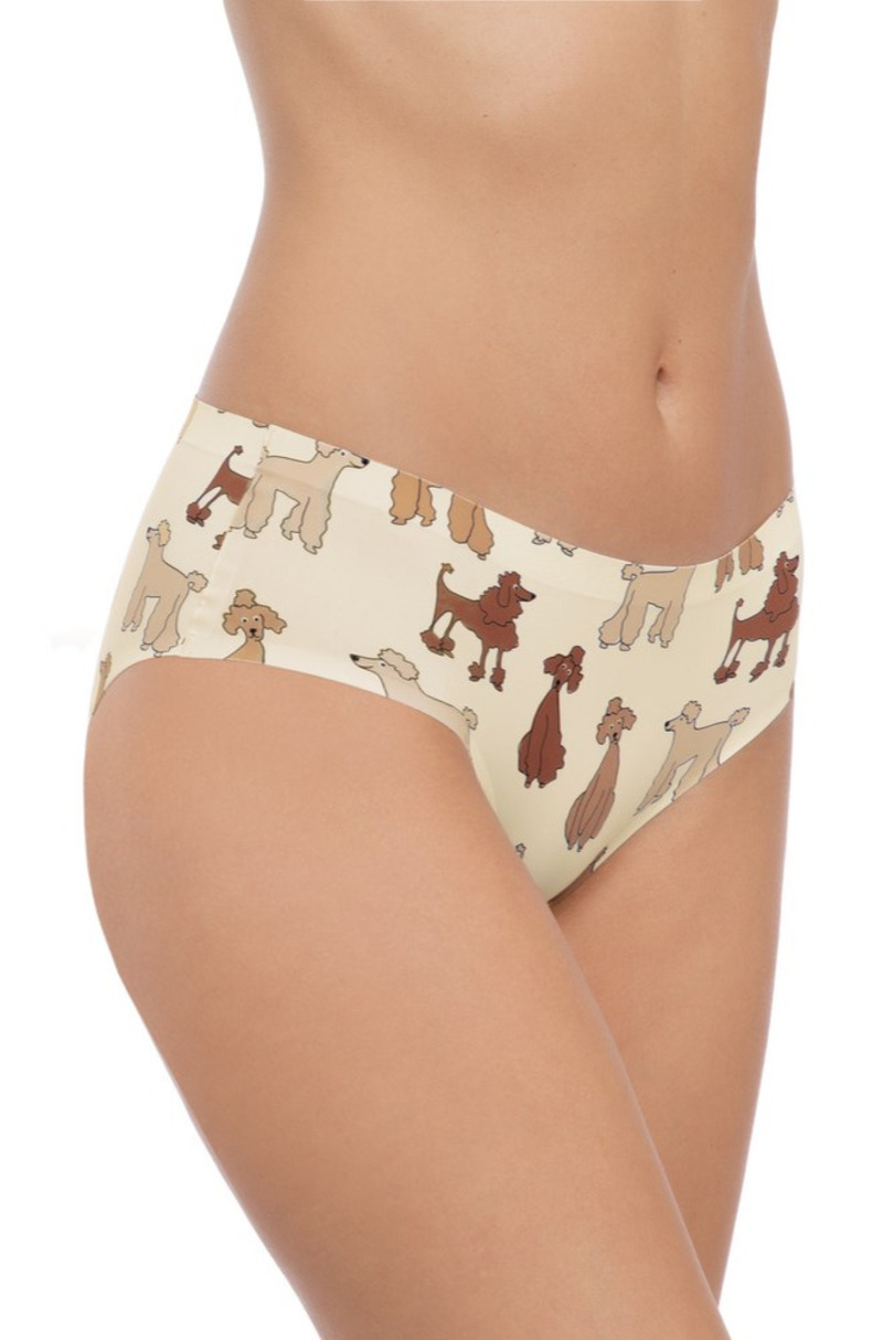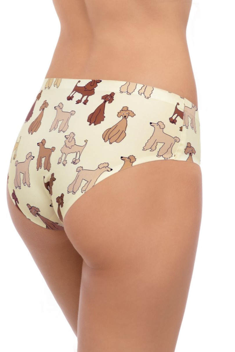 Ці класичні трусики повністю закривають фігуру та підкреслюють її привабливість. Прикрашені барвистим, веселим візерунком із зображенням собаки, вони упаковані в декоративну коробку, що ідеально підходить для подарунка. Виготовлені з 89% поліаміду, 1% бавовни та 10% еластану.
