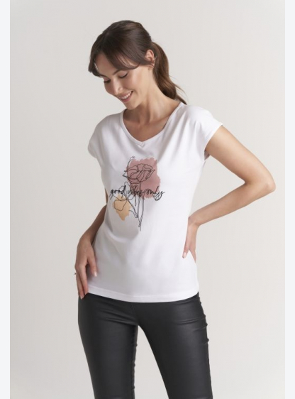 Жіноча футболка з коротким рукавом з високоякісної бавовни. Прикрашена аплікацією. Склад: 95% бавовн..