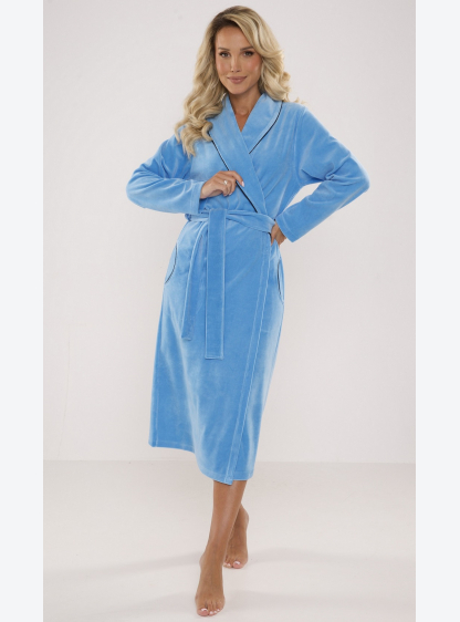 Жіночий довгий велюровий халат з коміром, зав'язаний на талії. Склад: 80% бавовна, 20% поліамід...