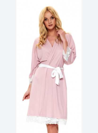 Жіночий халат з високоякісної м'якої тканини. Він має мереживне закінчення на рукавах, довжина 3/4. ..