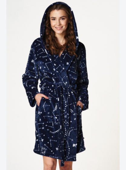 Жіночий халат з капюшоном з м'якої м'якої тканини. Декоративна аплікація із зіркою на висоті грудей...