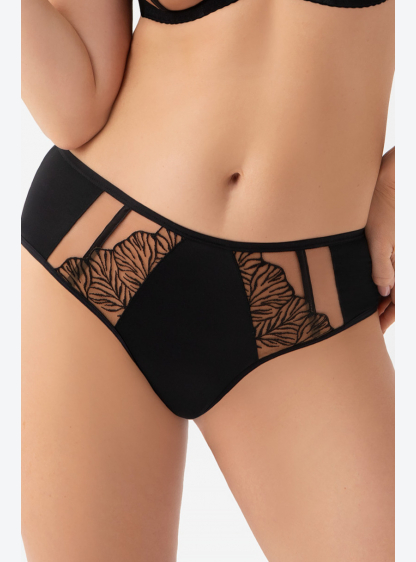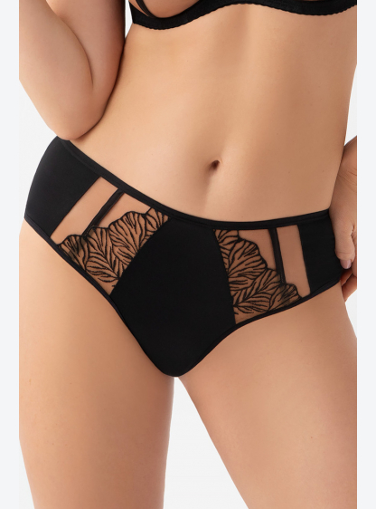 Середня талія. Вони відкривають та підкреслюють сідниці. Виготовлені з непрозорої мікрофібри з вишив..