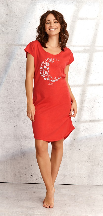 Нічна сорочка з короткими рукавами з якісного приємного бавовни. Прикрашена відбитком. Довжина вище коліна. Склад: 100% бавовна.