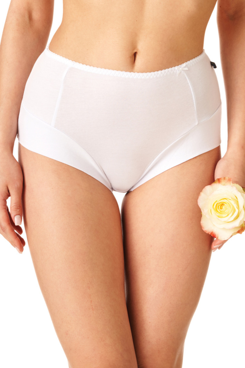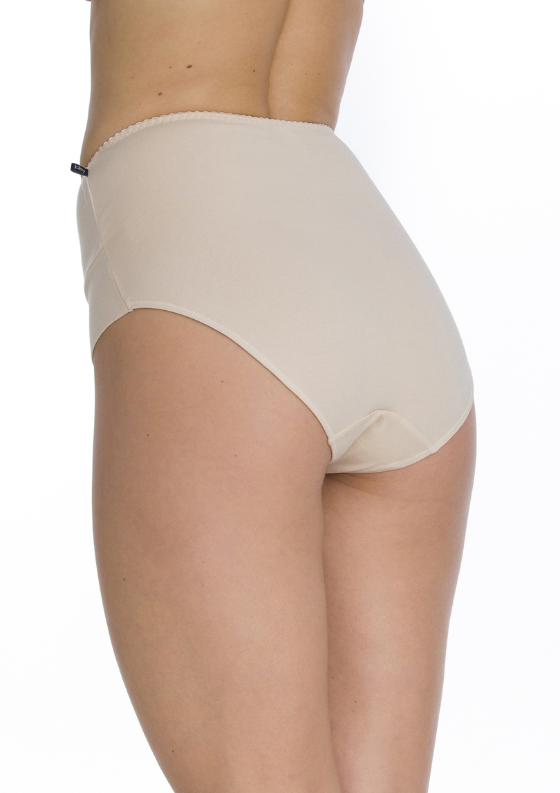 Жіночі трусики з м’якого однорідного бавовни з додаванням 5% еластану, побудовані на стегнах. Упакований попарно в коробку.