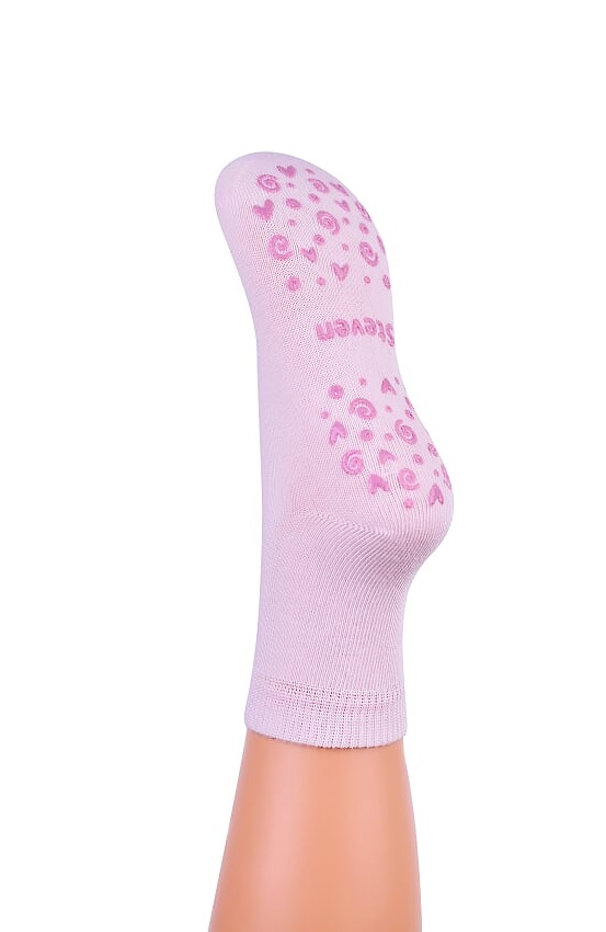 Дитячі шкарпетки, виготовлені з ніжної бавовни. Неслизькі візерунки на стопі. Склад: 73% бавовна, 23% поліамід, 4% еластан. Випускається в декількох кольорах.