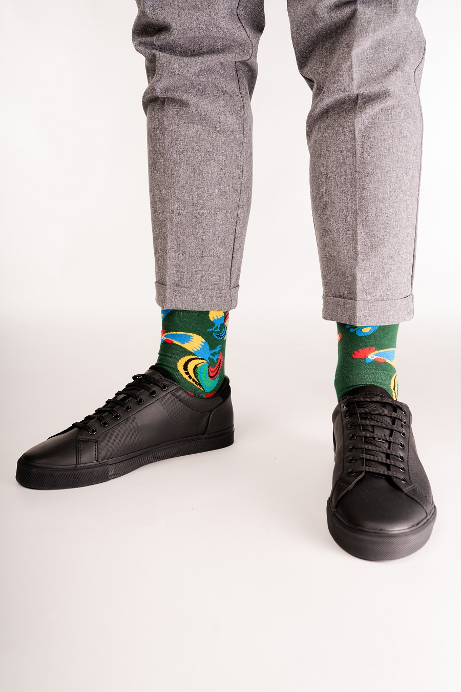 Зручні чоловічі шкарпетки, прикрашені народним візерунком. Плоскі шви, не стискаючий зварний шов. Склад: бавовна 60%, поліамід 25%, поліпропілен 12%, еластан 3%.