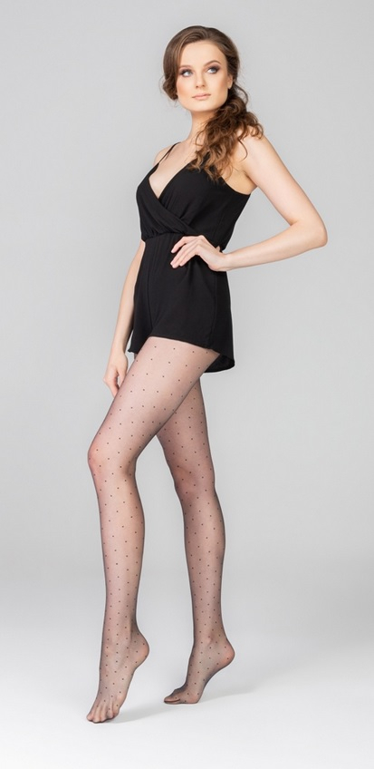 Жіночі колготки з маленькими крапками, 13 ден. Плоский шов в трусиках, посилений носок. Невибрана частина трусиків. Широка, зручна манжета. Склад: 85% поліамід, 14% еластан, 1% бавовна.