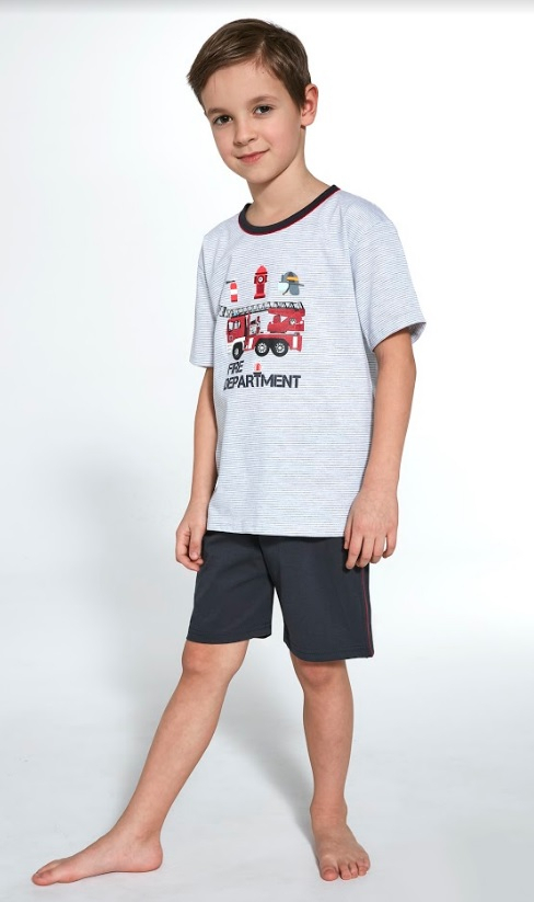 Піжама для хлопчика з якісної м'якої бавовни. Футболка з коротким рукавом, спереду прикрашена кольоровим принтом. Короткі однорідні шорти. Упакований в коробку. Склад: 92% бавовна 8% поліестер.