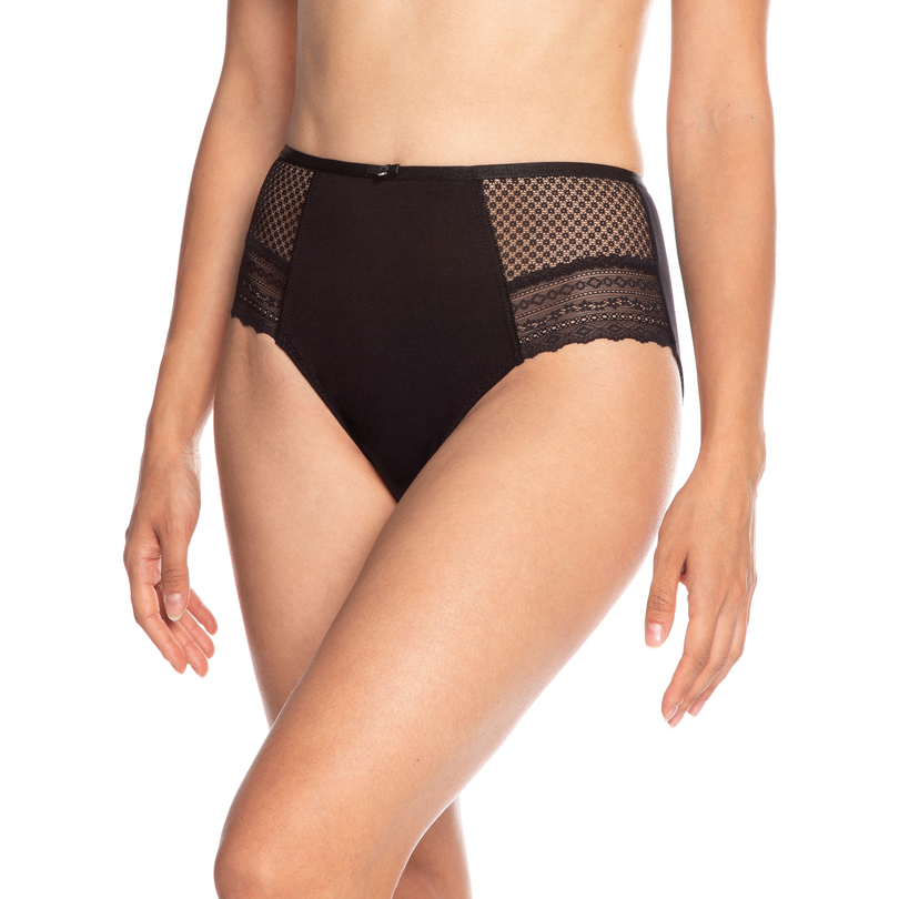 Бавовняні жіночі труси з кроєм бікіні міді. Висока талія, побудована на стегнах. Мереживні вставки. Упаковано в коробку з двох. Склад: 95% бавовна, 5% еластан.
