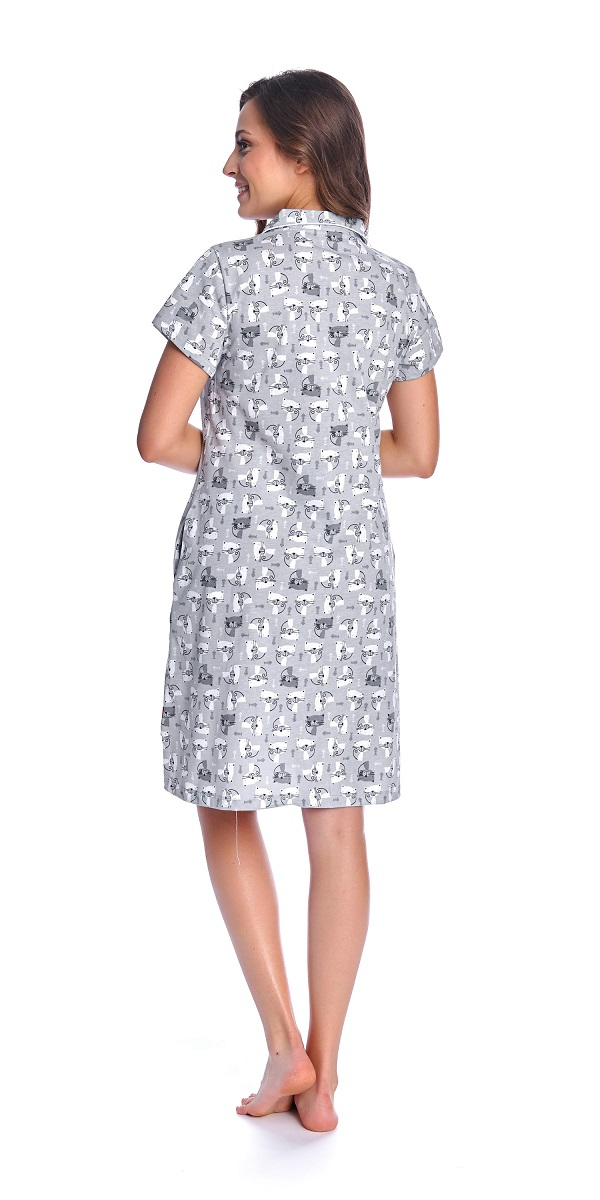 Жіноча нічна сорочка з малюнком з високоякісної бавовни. З короткими рукавами, з коміром, блискавка на всю довжину, зручні кишені на стегнах. Ідеально підходить для вагітних. Склад: 100% бавовна.