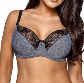 Бюстгальтер на напівм'якій конструкції. Ремінці - не знімні / регульовані, виготовлені з меланжевого трикотажу, посилені в нижній частині пінопластом і підкладені м’яким бавовною. Верхня частина виконана з еластичного мережива з квітковим малюнком.