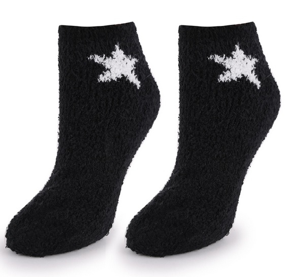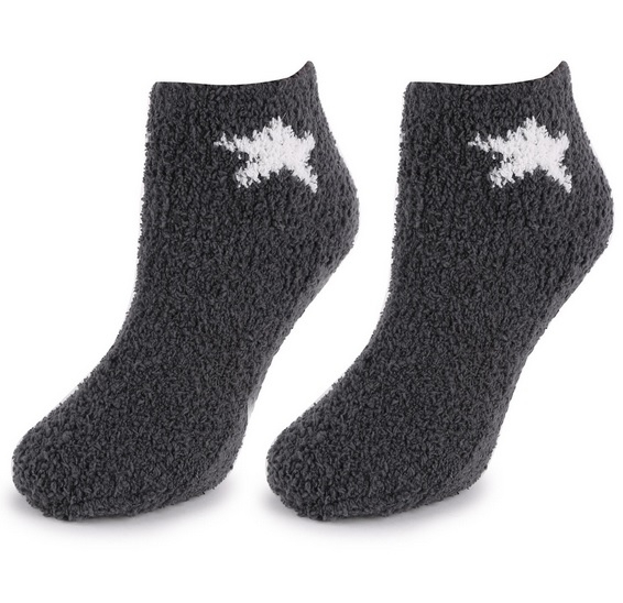 Махрові шкарпетки, м’які з декоративною зірочкою. Теплий, надзвичайно приємний на дотик. Вони мають нековзне дно. Ідеально підходить для холодної зимової пори року. Упаковано в 4 пари. Склад: 99% поліамід, 1% еластан.