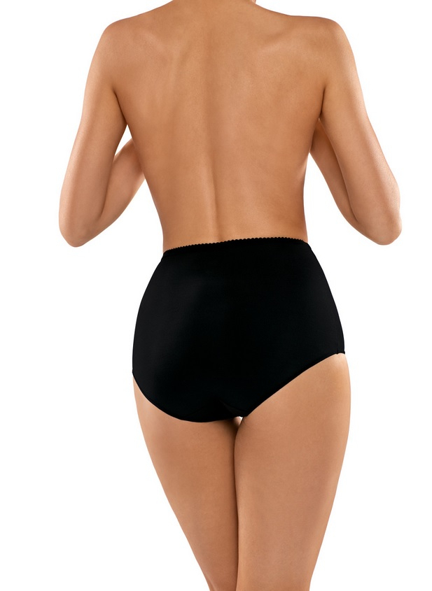 Жіночі модельні труси з високою лінією талії, нарощеними на стегнах. Силікон з внутрішньої сторони, щоб запобігти ковзанню. Вони коректують живіт, стегна і сідниці. Склад: 56% поліамід, 30% еластан, 14% бавовна.