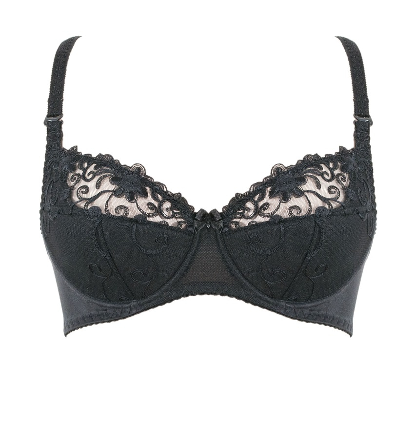 Надзвичайно чуттєвий напівпрокладений бюстгальтер Sonia. Верхня частина чашок бюстгальтера виконана з ніжного вишитого тюлю у квітковому візерунку. Прекрасно формує і піднімає великі груди.