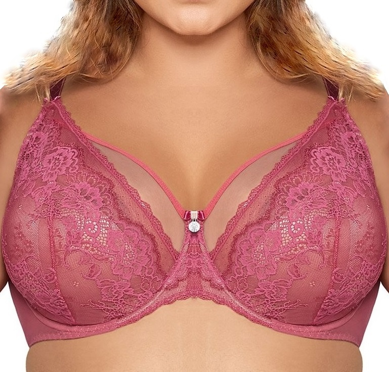 М'який жіночий бюстгальтер з нижньою оправою з подвійного шару матеріалу. Верхня частина чаші виконана з бежевого тюлю та тонкого мережива та оброблена гладкою еластичною стрічкою. Ремінці, що не знімаються. Склад: 88% поліамід, 8% бавовна, 4% еластан.