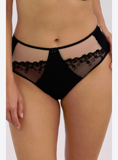 Ці вишукані чорні вишитих фатинових трусиків – ідеальне поєднання елегантності та комфорту. Передня ..