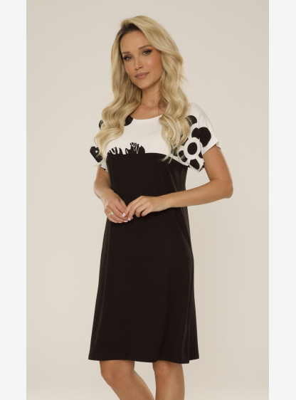 Жіноча сорочка з ніжної віскози з квітковим мотивом. Короткий рукав, вільний крій, довжина до коліна..