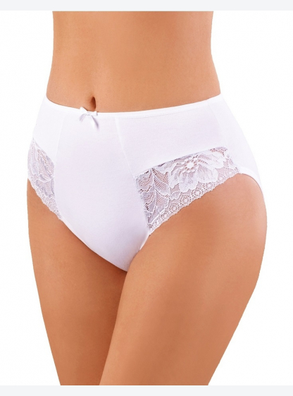 Жіночі труси з ніжної бавовни класичного крою, нарощені на стегна. Боковини прикрашені мереживом. Гл..