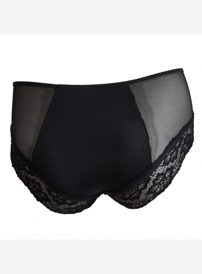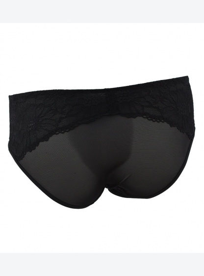 Високі жіночі труси, побудовані на стегнах. Фасад з гладкого мікроволокна. Спинка з тонкої тюлевої с..