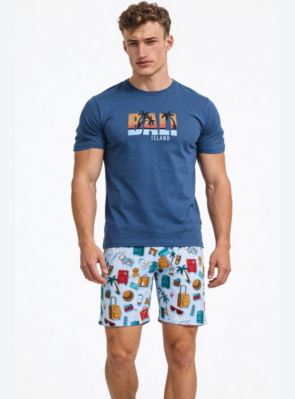 Чоловіча піжама Gabriel 3577 – це зручний та практичний комплект, ідеальний для теплих вечорів та ві..