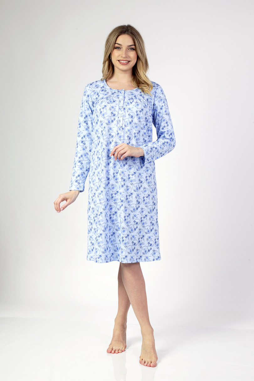 Жіноча сорочка з високоякісної бавовни. Горловина застібається на гудзики. М'яко зібрана кокетка, довгий рукав. Склад: 100% бавовна