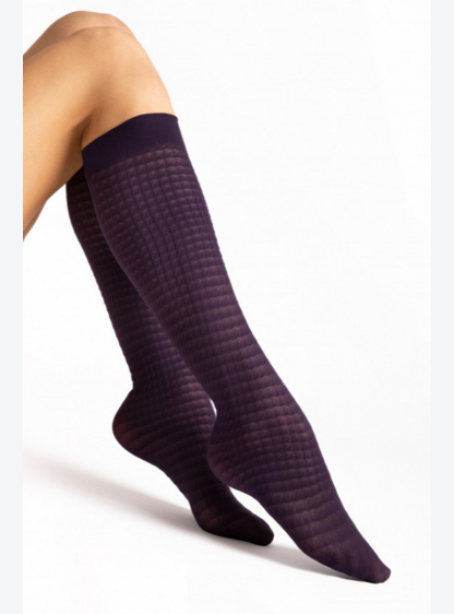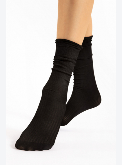 Довші шкарпетки з матово-блискучою текстурою грогрену. Доступні без манжет, з модним ефектом безшовн..