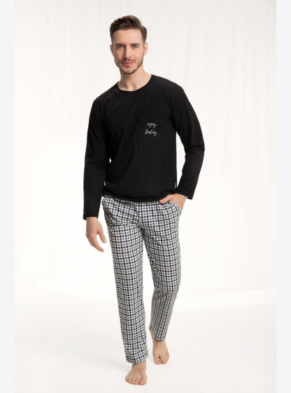 Чоловіча піжама з виключно м'якої бавовни. Блуза в клітинку з гудзиками, коміром і кишенями. Довгі о..