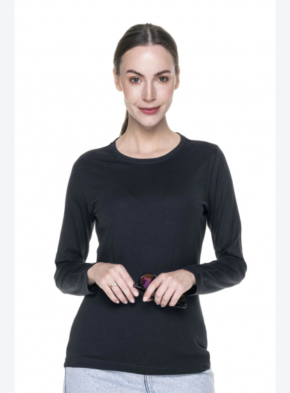 Жіноча футболка з довгими рукавами виготовлена з однотонної джерсі. Приталена тканина пропрана з вик..