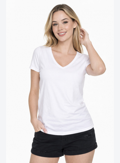 Жіноча футболка з V-подібним вирізом. М'який і гладкий одинарний трикотаж, еластична ребра, плечова ..