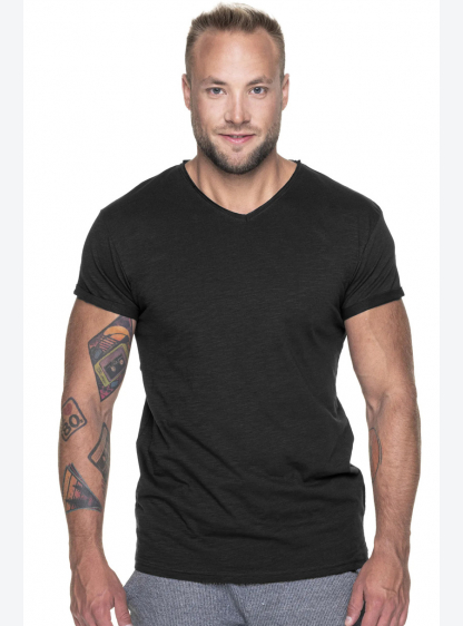 Чоловіча футболка з V-подібним вирізом. М'який і гладкий одинарний трикотаж, еластична ребра, подвій..