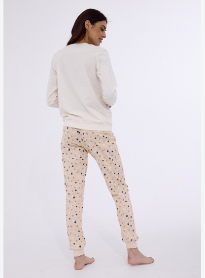 Жіноча піжама з якісної бавовни з ніжним бежевим малюнком. Футболка з довгим рукавом. Довгі брюки зі..