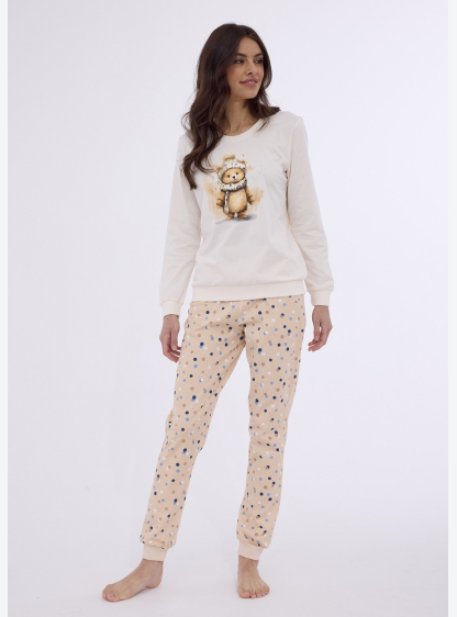 Жіноча піжама з високоякісної бавовни, спереду прикрашена кольоровим ведмедиком. Штани довгі, в горо..
