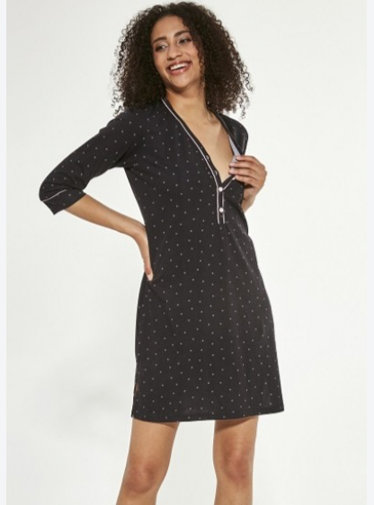 Нічна сорочка з бавовни високої якості. Візерунок в горошок, V-подібний виріз, на гудзиках. Склад: 1..