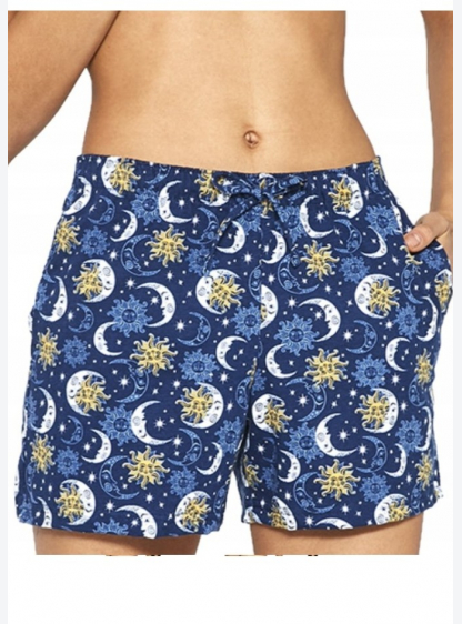 Жіночі спальні шорти з кишенями. Виготовлений з високоякісної бавовни з малюнком. Еластична талія з ..