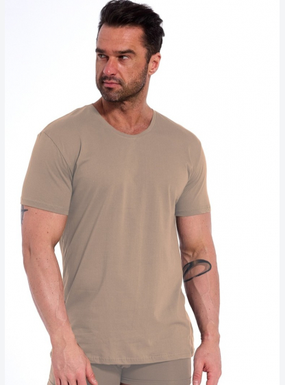 Зручна чоловіча футболка з коротким рукавом. V-подібний виріз. Подвійні шви на рукавах і внизу сороч..