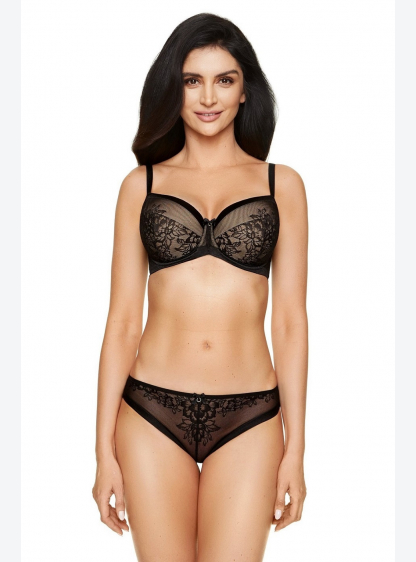 Бюстгальтер push-up красиво підкреслює бюст. Чашки покриті чорним мереживом з ніжним візерунком, при..