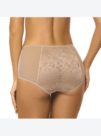 Елегантні високі труси делікатно формують талію і живіт. Виготовлений з блискучої мереживної тканини..