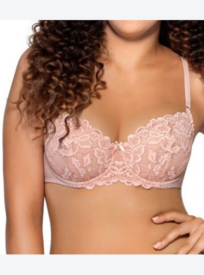 Напівм'який бюстгальтер, чашечки з візерункової сітки, підбиті мереживом. Модель не має вертикальних..