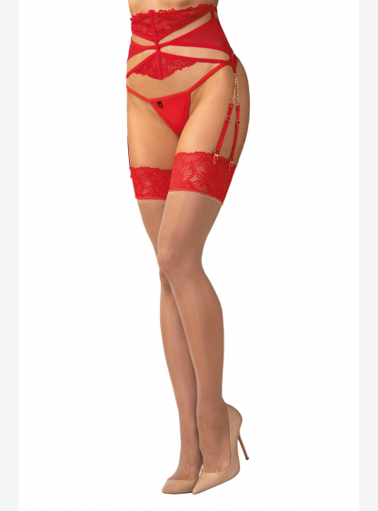 Цей червоний пояс для панчіх створений для жінок, які люблять білизну з характером. Поєднання ніжног..
