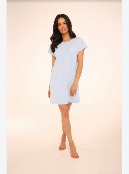 Жіноча нічна сорочка з високоякісного бавовни з короткими рукавами. Напівокругле виріз, оброблений в..