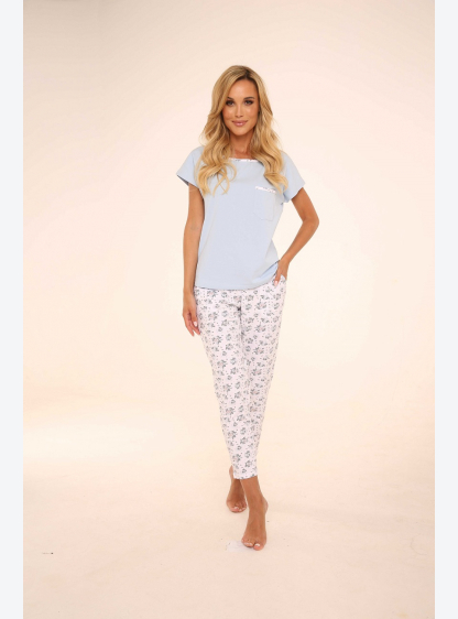 Жіноча піжама з високоякісного бавовни з короткими рукавами. Напівокругле виріз, оброблений візерунк..