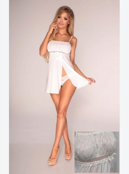 Короткий халат з ніжного тюлю, оброблений декоративною вишивкою, зав’язаний на талії. У комплект вхо..