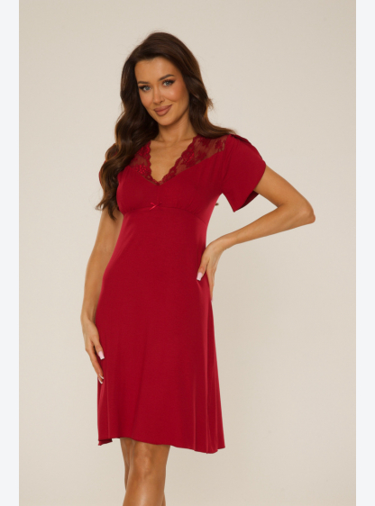 Жіноча сорочка з приємної та приємної віскози. V-подібний виріз, прикрашений мереживом. Короткий рук..