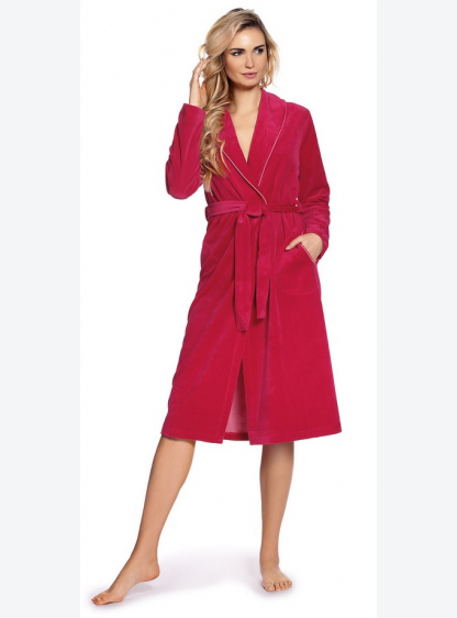 Жіночий довгий велюровий халат з коміром, зав'язаний на талії. Склад: 80% бавовна, 20% поліамід...