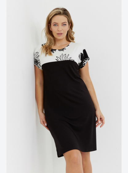 Жіноча сорочка з коротким рукавом з високоякісного матеріалу. Прикрашена модним візерунком. Склад: 9..
