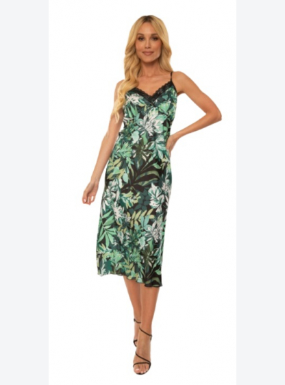 Красива, повітряна і ніжна довга жіноча сорочка. Виготовлений з атласу з красивим зеленим квітковим ..